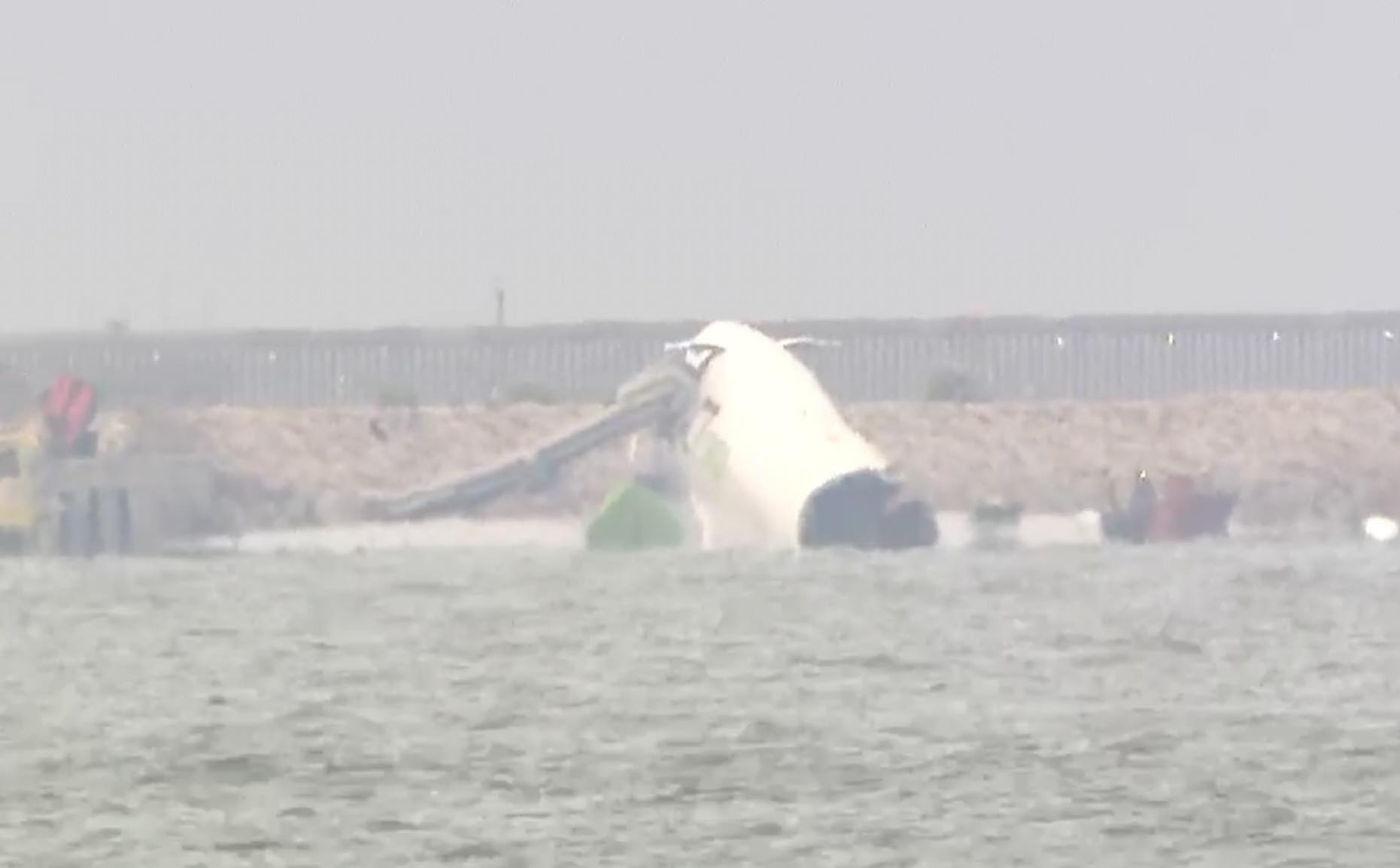涉事貨機在事故後,機頭擱在機場跑道防波堤,有明顯損毀,逃生滑梯彈出,機身斷開兩截,中尾段在水中。消防出動大批消防車、滅火輪、快艇等在附近一帶海陸空搜索,水警亦封鎖海面,禁止其他船隻靠近。