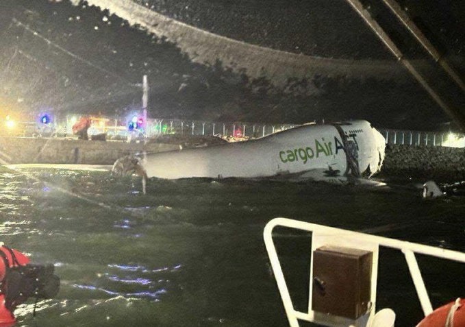 一架迪拜來港貨機降落時滑出跑道並衝落海,期間把跑道上的巡邏車推落海,車內兩人死亡。受事故影響,機場北跑道要關閉。