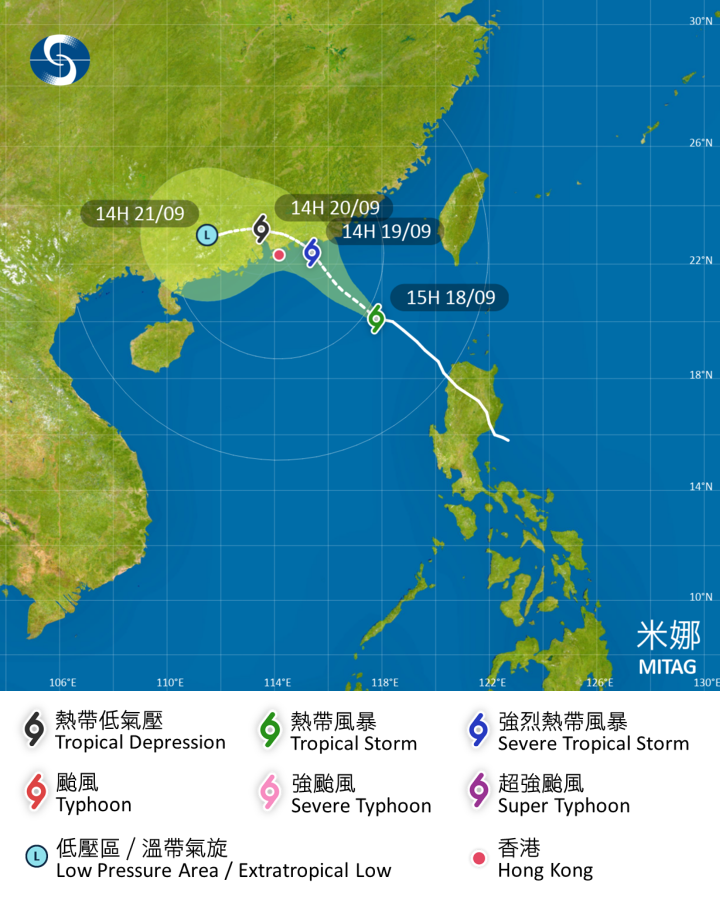 天文台目前預期下周三(24 日),香港普遍吹東至東北風 6 級強風,離岸及高地達 8 級烈風,相當於八號信號的風力。當日密雲,有狂風驟雨及雷暴。雨勢有時頗大。海有大浪及湧浪,氣溫介乎 26 至 30 度。